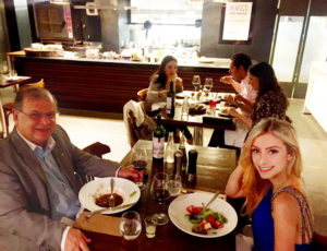 look-do-dia-azul-klein-correntes-saia-floral-jantar-alma-chef